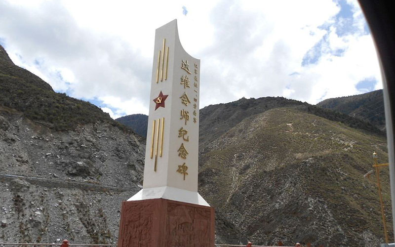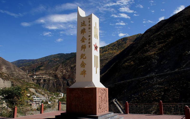 四方面军的胜利会师,实现了中国革命战争新的历史性转折,为缅怀红军的这段历史,当年会师的达维桥已授名为达维会师桥,并立碑铭记。纪念碑上端为四棱立柱状,四面基座有翻越夹金山和胜利会师的浮雕。